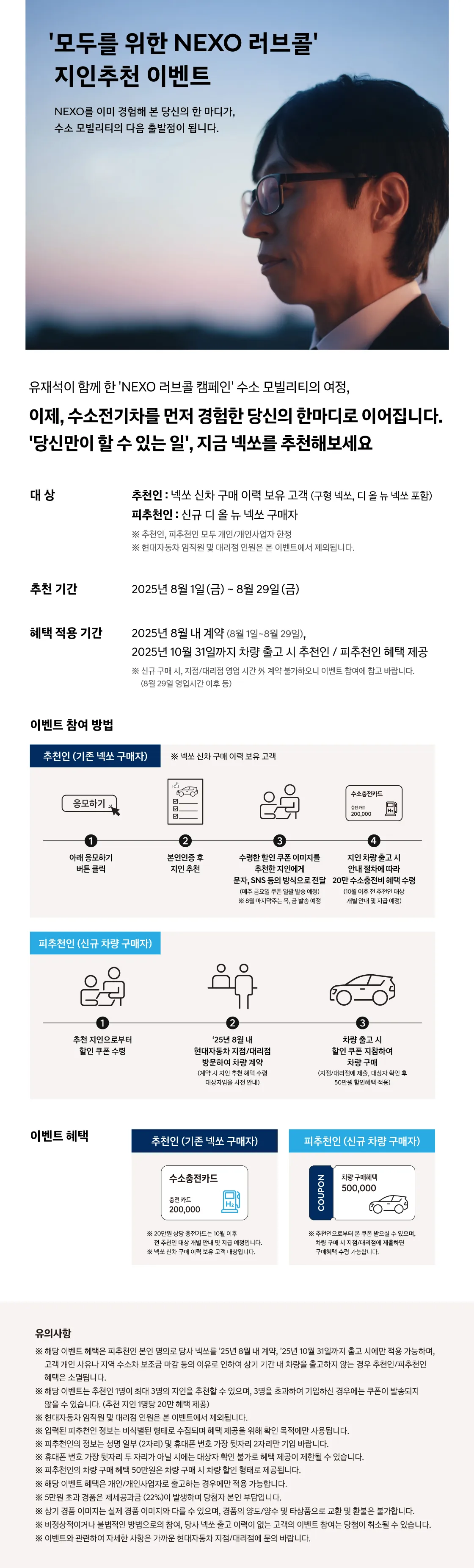 | 추천인 | 넥쏘 신차 구매 이력 보유 고객 (구형 포함, 개인/개인사업자만) |