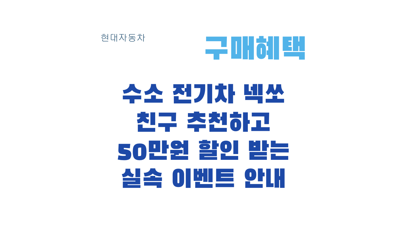 | 피추천인 | 신규 넥쏘 구매 시 차량 구매 혜택 50만원 할인 (계약 시 쿠폰 제출 필수) |
