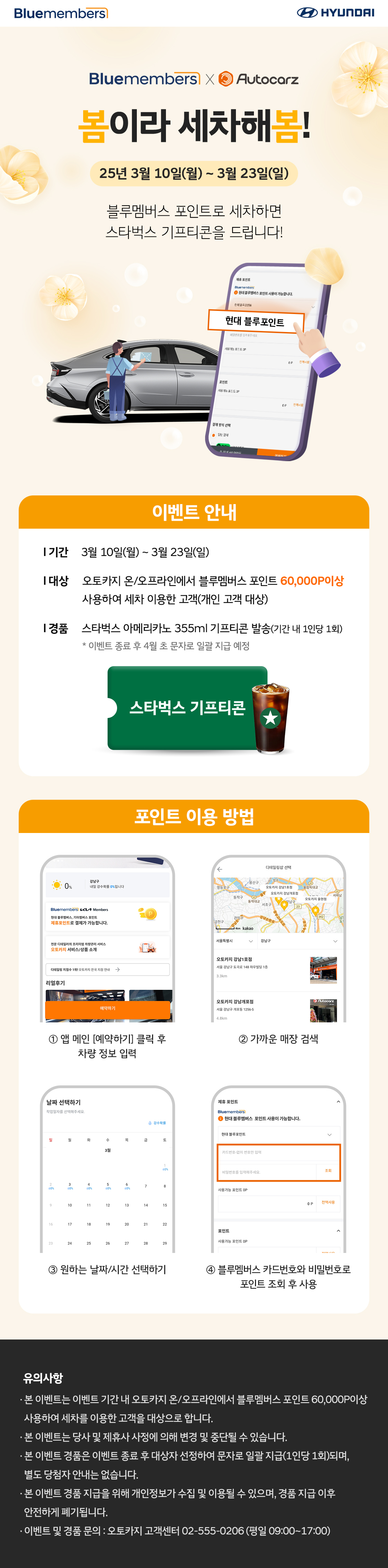이번 기회에 블루멤버스 포인트를 활용하여 차량 관리도 하고 스타벅스 커피도 즐겨보세요!