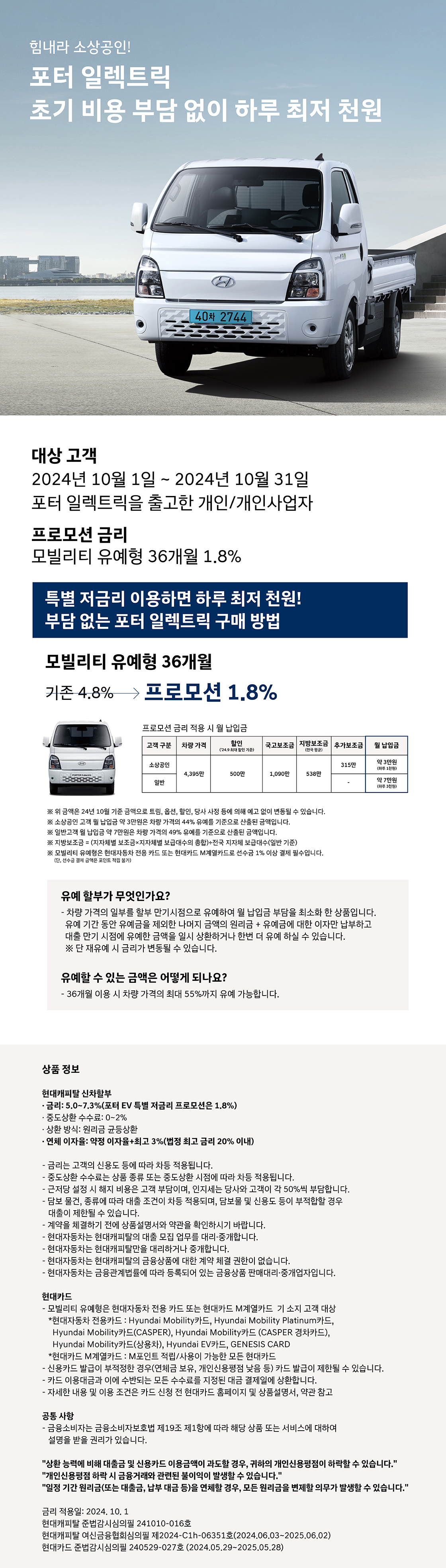 포터 일렉트릭을 하루 1,000원으로 구매할 수 있다는 사실, 알고 계셨나요? 현대자동차에서 10월 한 달간 소상공인을 위한