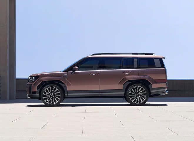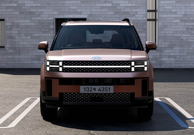 신형 싼타페의 가장 큰 특징은 단연 파격적인 디자인 변화라고 할 수 있죠. 부드러운 곡선 대신 직선을 앞세운 박스형 실루엣은 과거 갤로퍼의 유산을 현대적으로 재해석한 듯한 인상을 줍니다. 전면과 후면 램프에 일관되게 적용된 'H' 모양의 시그니처 디자인은 현대차의 정체성을 강하게 드러내면서도 미래지향적인 느낌을 더해주는 요소입니다.