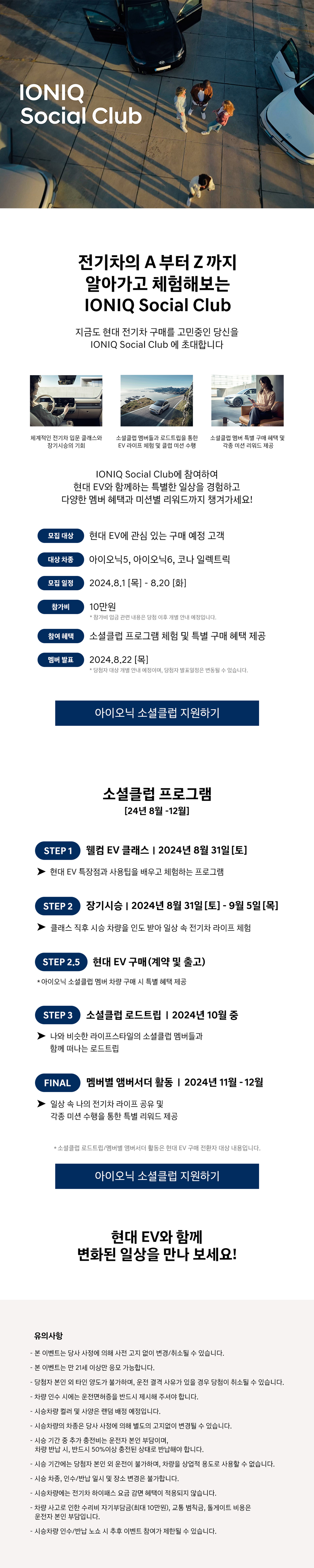 *소셜클럽 로드트립/멤버별 앰버서더 활동은 현대 EV 구매 전환자 대상 내용입니다.