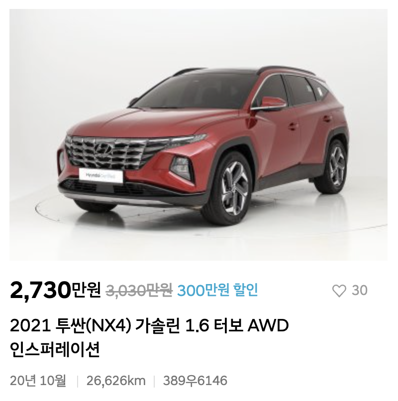 모델: 2021 투싼(NX4) 가솔린 1.6 터보 AWD 인스퍼레이션