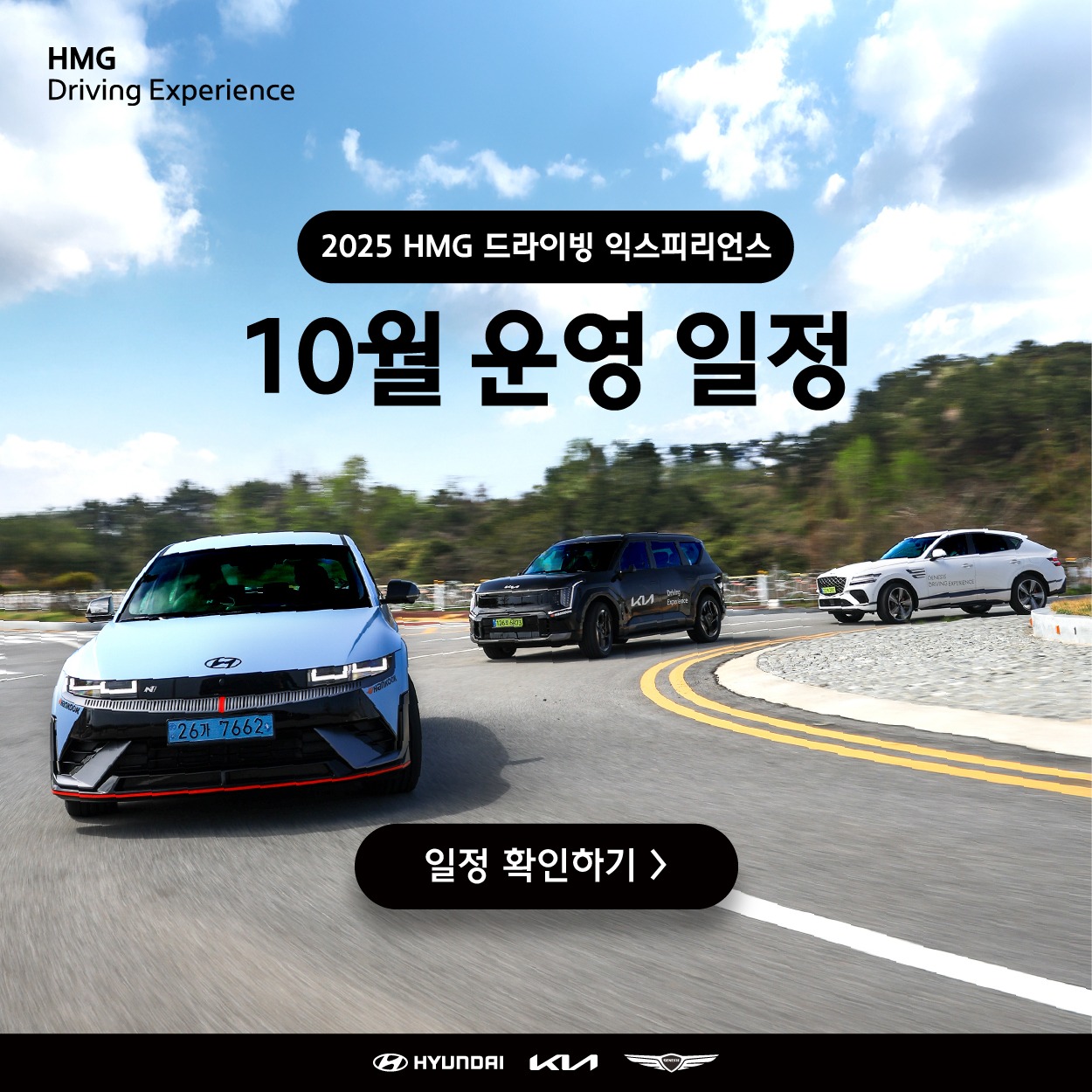 이번 가을, HMG 드라이빙 익스피리언스에서 잊지 못할 추억을 만들어보는 건 어떨까요? 망설이는 순간 기회는 사라질지 몰라요. 지금 바로 당신의 드라이빙 본능을 깨워보세요!