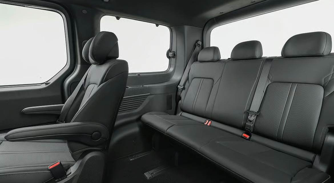 스타리아 EV는 기존의 혁신적인 인사이드 아웃 테마를 유지하면서도 전기차만의 하이테크한 감성을 더했습니다. 전면부에는 하나로 길게 이어진 수평형 램프가 탑재되어 미래지향적인 느낌을 강하게 풍기는데요. 특히 공기 저항을 줄여주는 외장형 액티브 에어 플랩을 적용해 주행 효율을 높인 점이 눈에 띄네요. 충전구는 전면부에 배치되어 주차 공간에서 충전기를 연결하기 매우 편리하도록 설계되었습니다. 군더더기 없는 매끄러운 바디 라인과 EV 전용 17인치 휠의 조화는 도로 위에서 시선을 사로잡기에 충분할 거에요.