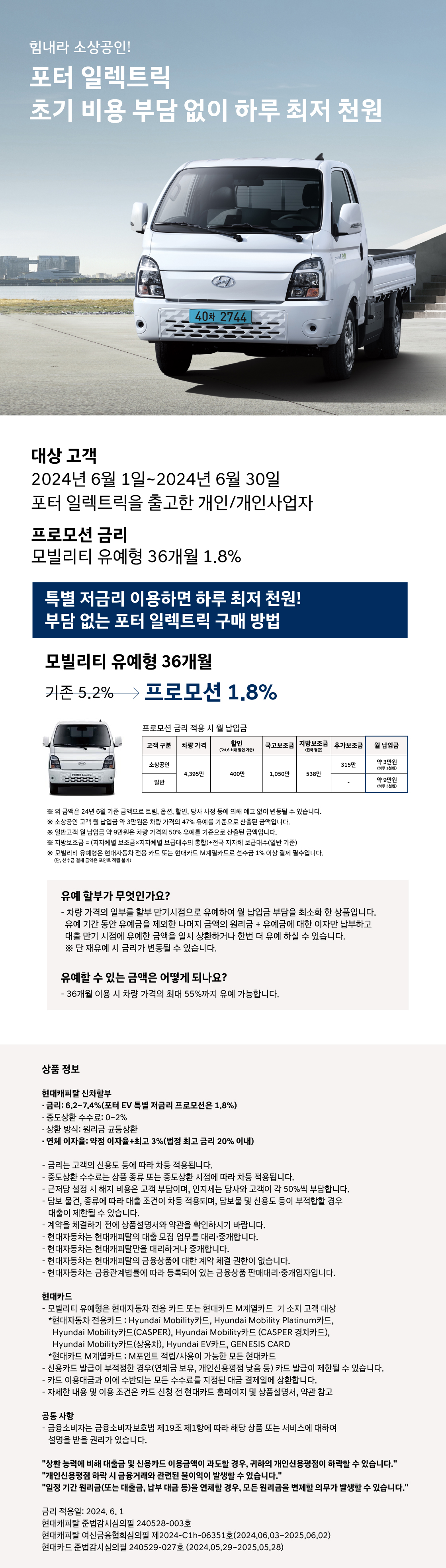 이번 글에서는 "포터 일렉트릭 하루천원 프로모션"에 대해 알아보겠습니다.