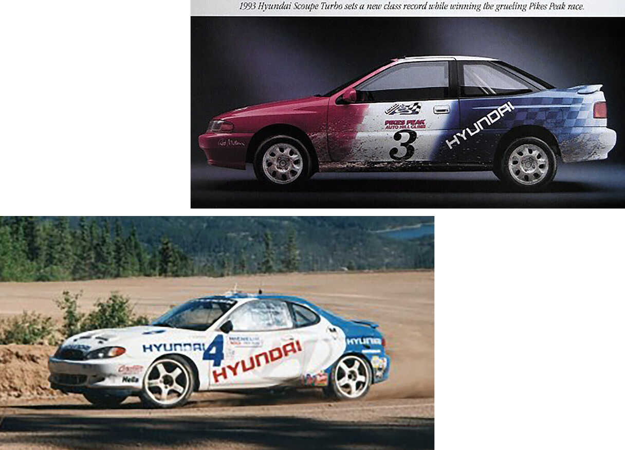 가령 1993년 로드 밀렌은 엘란트라를 타고 11분 57초 34의 기록으로 오픈 부문 2위를, 1997년에는 폴 초이네르(Paul Choiniere)가 티뷰론을 타고 11분 56초 79를 기록하며 오픈 부문에서 우승했습니다. 2009년에는 로드 밀렌의 아들인 리스 밀렌(Rhys Millen)이 제네시스 쿠페를 타고 2WD 타임어택 클래스에서 신기록을 기록하며 부자가 현대차를 타고 우승의 영광을 안는 명장면을 연출하기도 했죠. 리스 밀렌은 2013년에 현대차 제네시스 쿠페 엔진을 기반으로 한 경주차 ‘PM580T’로 9분 2초 192를 기록하며 무제한급 2위에 오르기도 했습니다.