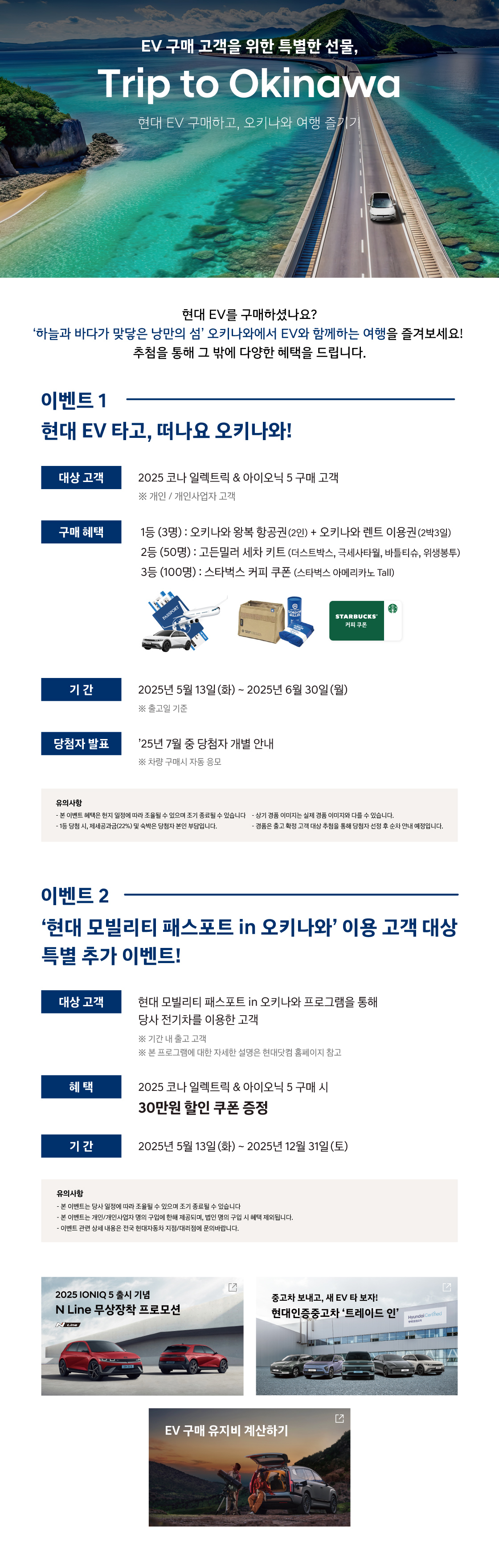 2025 코나 일렉트릭과 아이오닉 5 구매 시 오키나와 여행의 기회를 잡아보세요