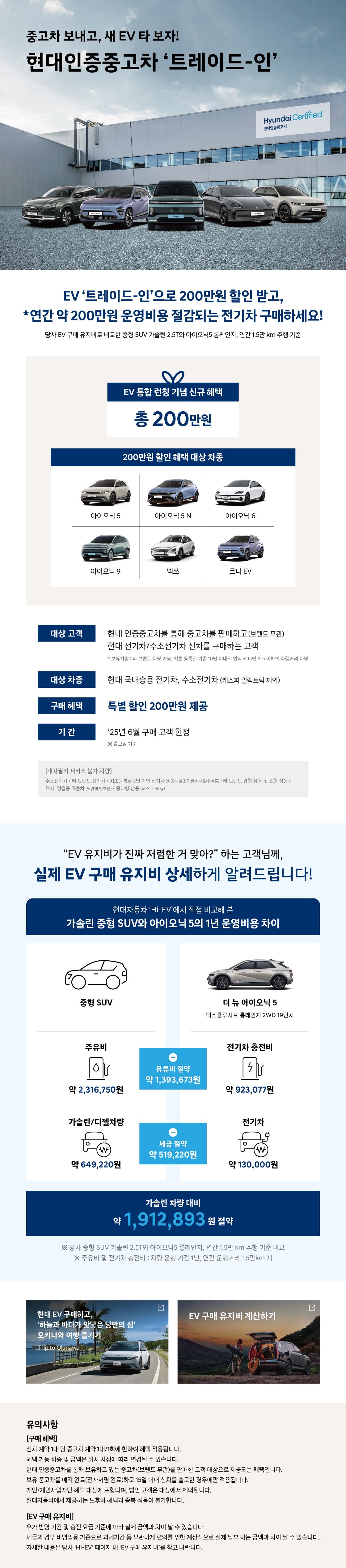 전기차 시장의 급성장과 함께 다양한 혜택들이 제공되고 있어요. 현대 인증중고차 트레이드인 프로모션을 통해 스마트한 전기차 전환을 시작해보세요!