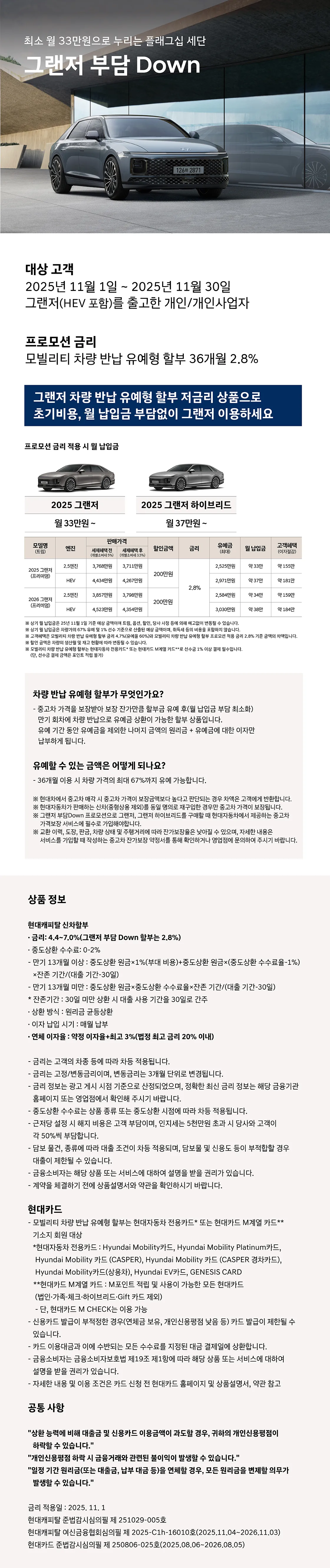 현대캐피탈 준법감시심의필 제 251029-005호 | 현대캐피탈 여신금융협회심의필 제 2025-C1h-16010호(2025.11.04~2026.11.03) | 현대카드 준법감시심의필 제 250806-025호(2025.08.06~2026.08.05)