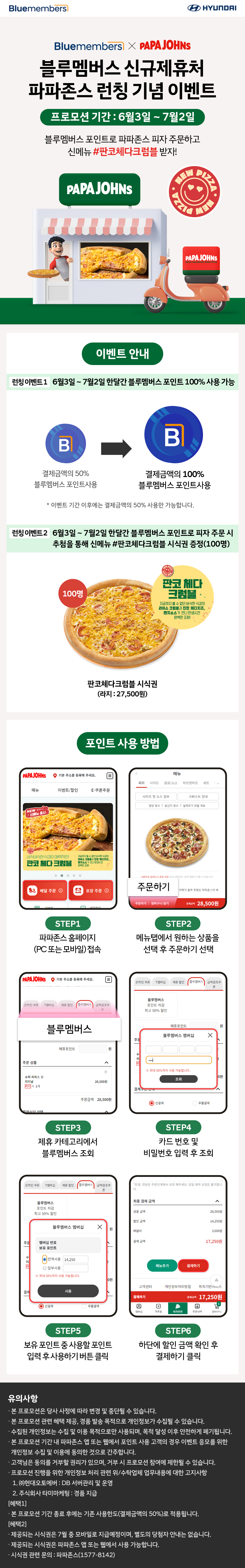 블루멤버스 신규 제휴처 파파존스 런칭 기념 이벤트