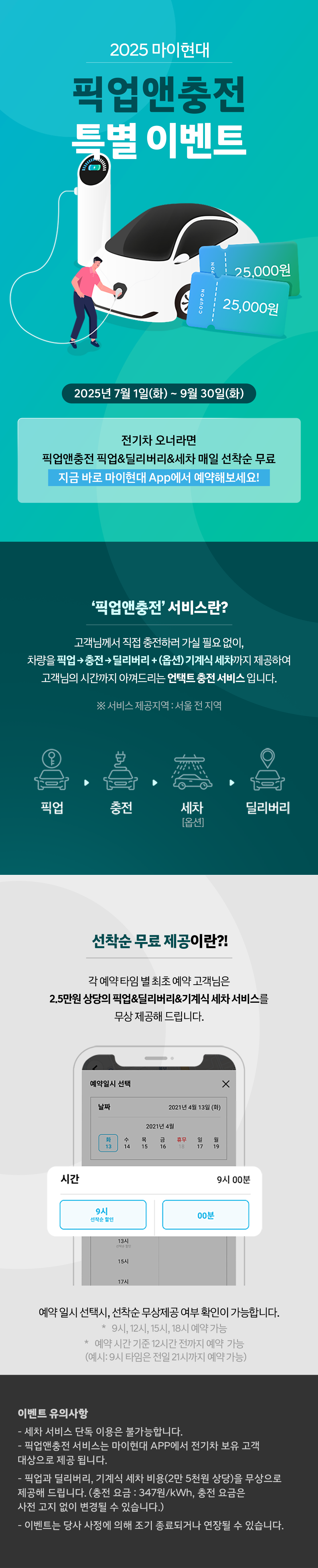 2025 마이현대 픽업앤충전 특별 이벤트가 7월 1일부터 9월 30일까지 진행돼요.