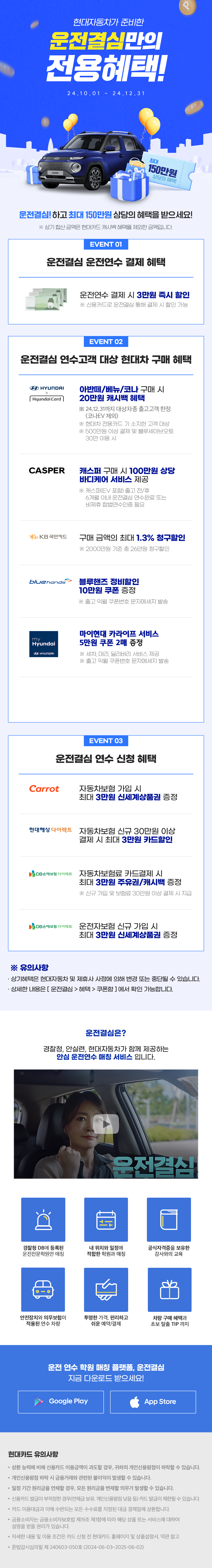 '운전결심'이라는 이름의 이 프로모션은 초보 운전자들을 위해 준비된 것으로, 최대 150만원 상당의 혜택을 제공합니다.
