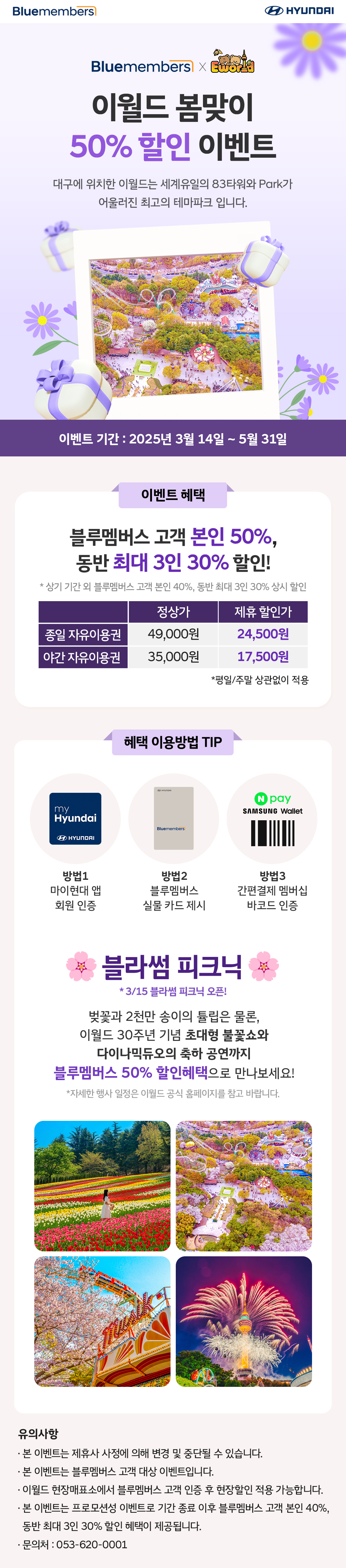 현대자동차 블루멤버스 X 이월드 봄맞이 50% 할인 이벤트
