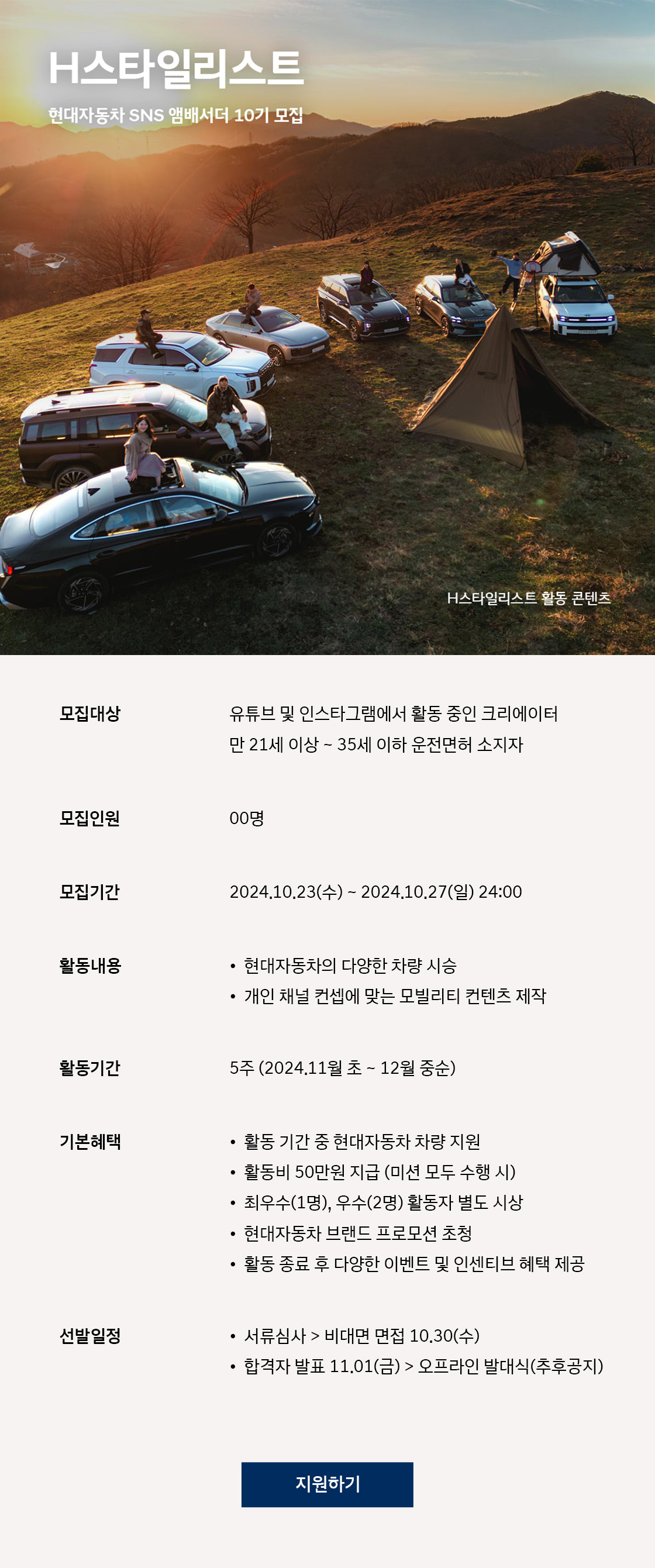 현대자동차가 SNS 앰배서더 'H스타일리스트' 10기를 모집합니다.