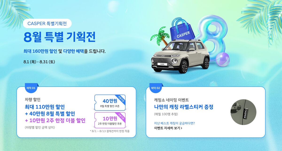 현대 캐스퍼 8월 특별 기획전