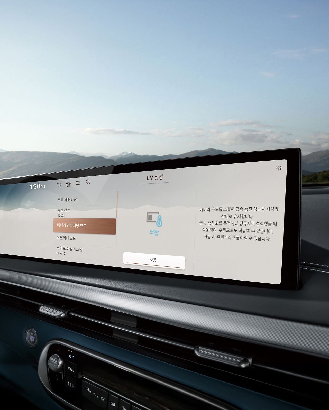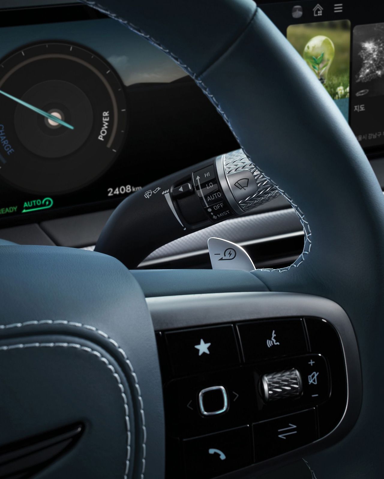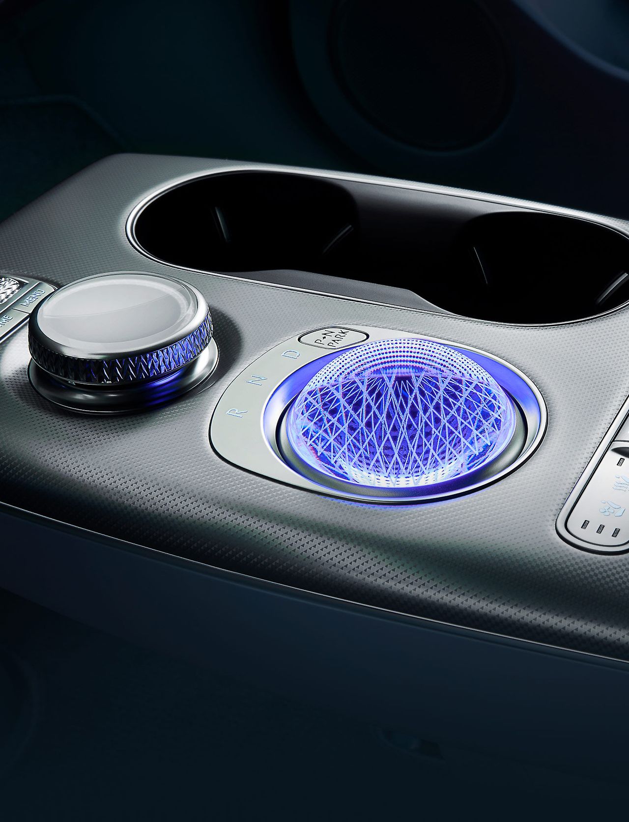 무엇보다 실내의 상징은 바로 크리스탈 스피어일 겁니다. 시동이 꺼진 상태에서는 아름다운 크리스탈 오브제였다가, 시동을 켜면 180도 회전하며 전자식 변속 다이얼로 변신하는 모습은 정말 인상적이죠. 이는 운전자가 차량의 구동 준비 상태를 명확하게 인지하도록 돕는 안전 기능이자, 감성적인 경험을 제공하는 독창적인 아이디어예요.