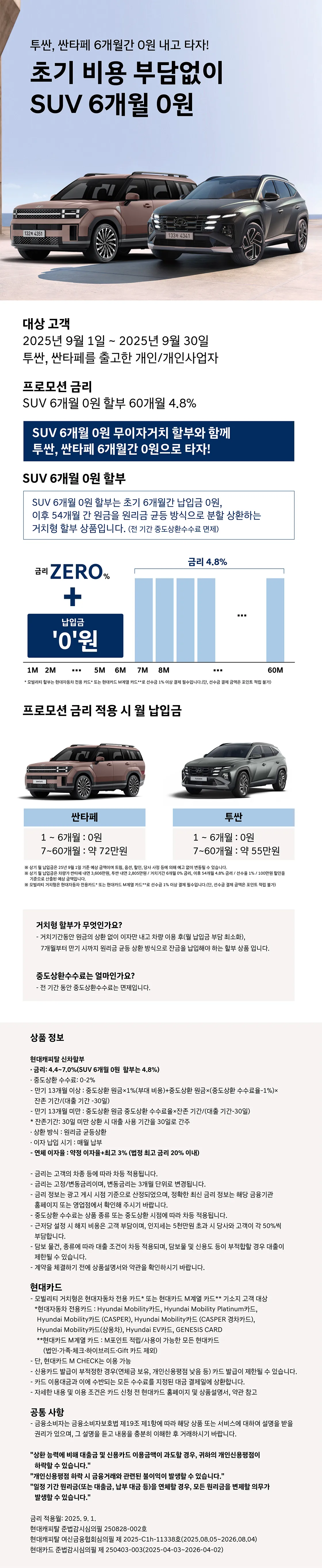 SUV 6개월 0원 할부 + 투싼, 싼타페 6개월 공짜? 9월 한정, 초기비용 0원으로 SUV 오너되는 법!