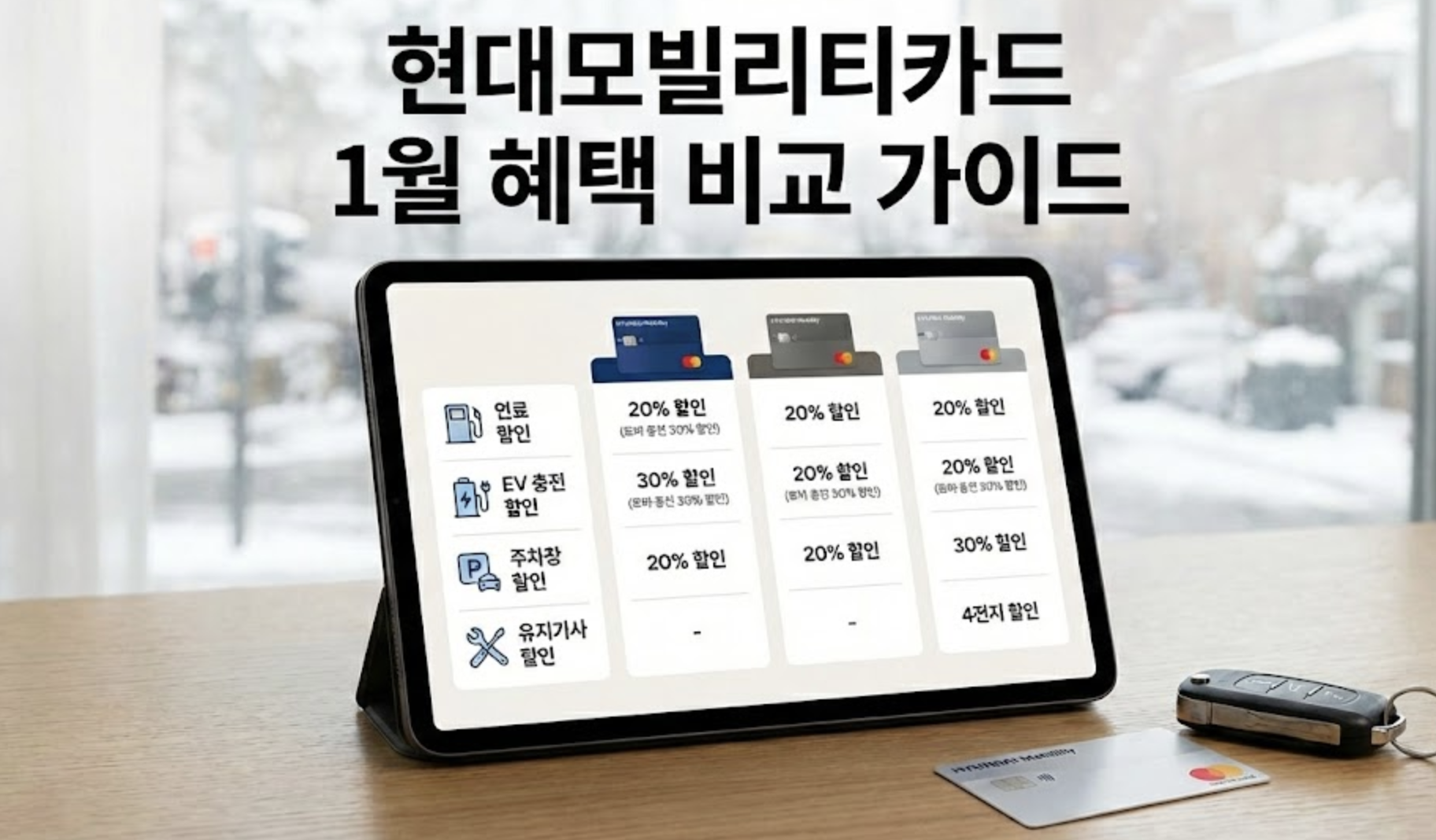 2026년 1월 현대차 구매 전 필수 체크 현대모빌리티카드 캐시백과 무이자 할부 혜택 정리 새해를 맞아 현대자동차 신차 구매를 계획하고 계신가요? 차량 가격이 만만치 않다 보니 조금이라도 더 저렴하게 사고 싶은 마음은 누구나 같을 겁니다. 결제 방식에 따라 수십만 원의 차이가 발생할 수 있기 때문에 지금 바로 나에게 맞는 카드 혜택을 확인하는 과정이 꼭 필요한데요. 2026년 1월 한정으로 제공되는 현대모빌리티카드의 적립과 캐시백 그리고 할부 혜택을 통해 가장 합리적인 구매 솔루션을 제안해 드립니다.일시불 결제 혜택 적립 또는 캐시백현대차 구매 시 일시불로 결제하면 포인트로 받을지 현금으로 돌려받을지 선택할 수 있습니다. 블루멤버스 포인트 적립형과 캐시백형 중 본인의 소비 성향에 맞춰 결정하는 것이 중요..